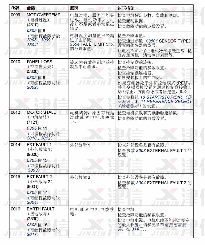 二、ABB ACS310變頻器0009-0016故障代碼,故障原因和糾正措施