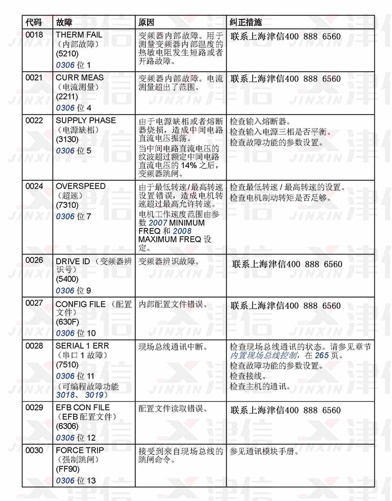 三、ABB ACS310變頻器0018-0030故障代碼,故障原因和糾正措施