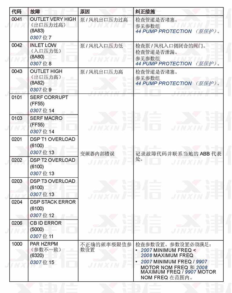 五、ABB ACS310變頻器0041-1000故障代碼,故障原因和糾正措施