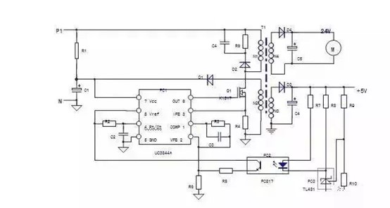 - 對UC3844單獨上電,短接PC2輸入側,若電路起振,說明故障在PC2輸入側外圍電路;電路不起振則檢查輸出側電路。