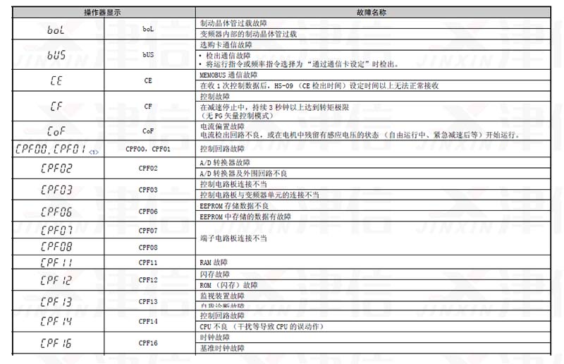 一、boL,bUS,CE,CF,CoF,CPF00,CPF01,CPF02,CPF03,CPF06,CPF07,CPF08,CPF11,CPF12,CPF13,CPF14,CPF16故障代碼